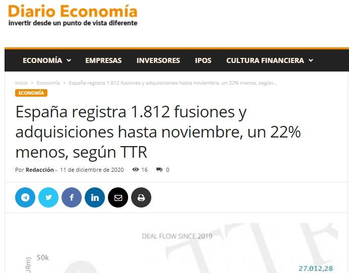 En cuanto a las perspectivas del mercado transaccional de España, el informe de TTR recoge las estimaciones de Allen & Overy Spain, que ha detectado más reestructuraciones societarias tras el verano y prevé que seguirán aumentando el próximo año. «Coincido con la mayoría de los que nos dedicamos a esto, que 2021 va a ser un año récord en operaciones de reestructuración», ha señalado Íñigo del Val, socio de fusiones y adquisiciones (M&A) de la firma.
