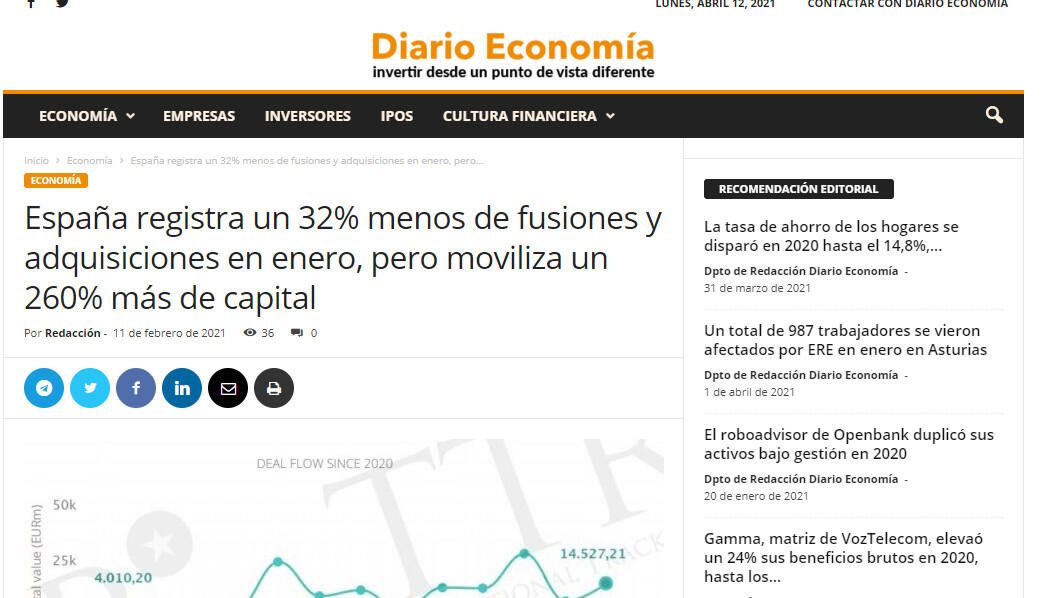 España registra un 32% menos de fusiones y adquisiciones en enero, pero moviliza un 260% más de capital