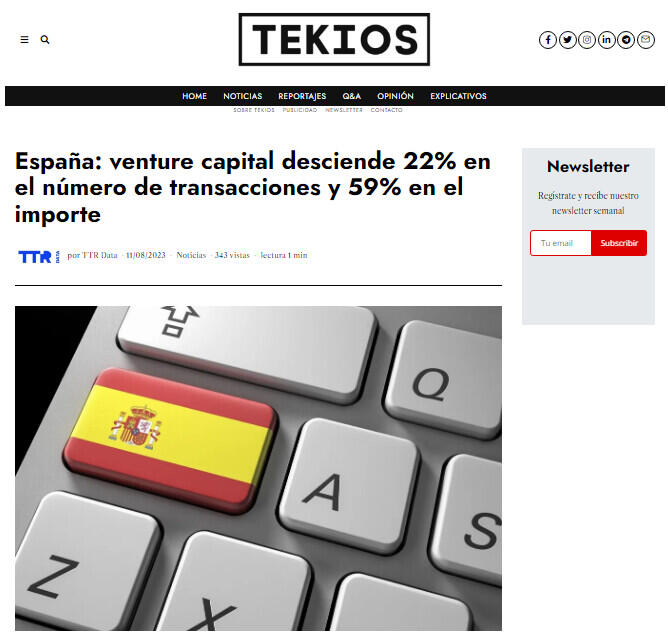 España: venture capital desciende 22% en el número de transacciones y 59% en el importe