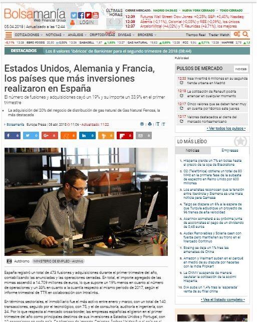 Estados Unidos, Alemania y Francia, los países que más inversiones realizaron en España