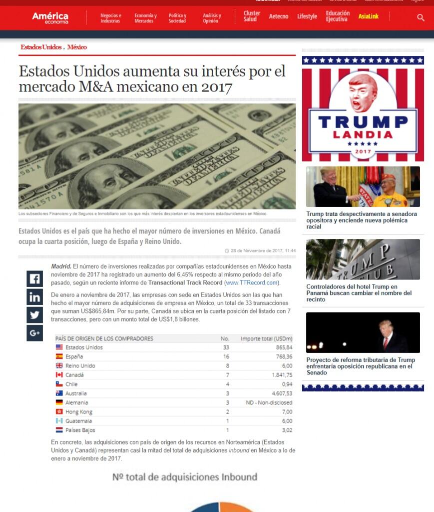 Estados Unidos aumenta su interés por el mercado M&A mexicano en 2017