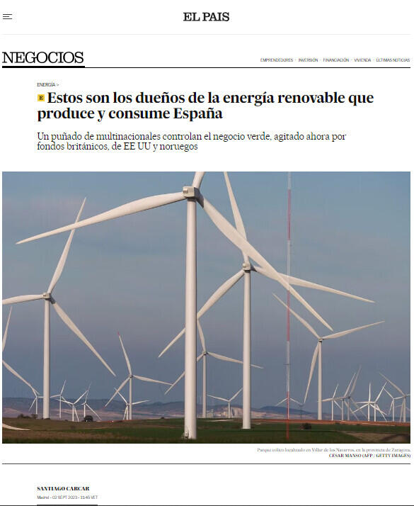Estos son los dueños de la energía renovable que produce y consume España