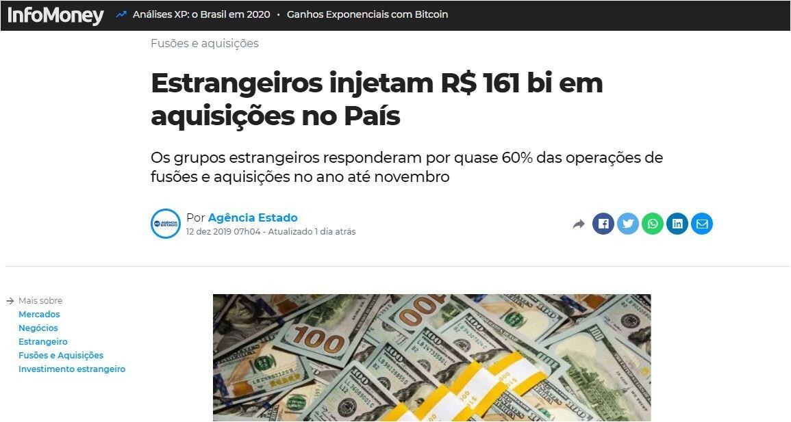 Estrangeiros injetam R$ 161 bi em aquisições no País