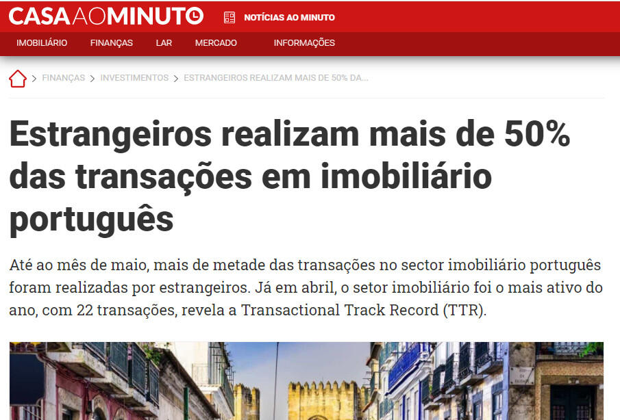 As aquisições realizadas até maio deste ano por estrangeiros representam mais de 50% das transações no sector imobiliário português, revelou esta sexta-feira a Transactional Track Record (TTR). A notícia é avançada pelo Diário Imobiliário.