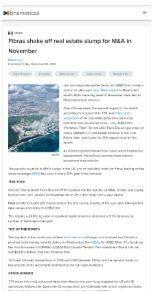 Just two major real estate deals, for US$872mn, made a dent in an otherwise slow M&A market in Mexico last month. Both these big deals in November were tied to Fibra investment vehicles.