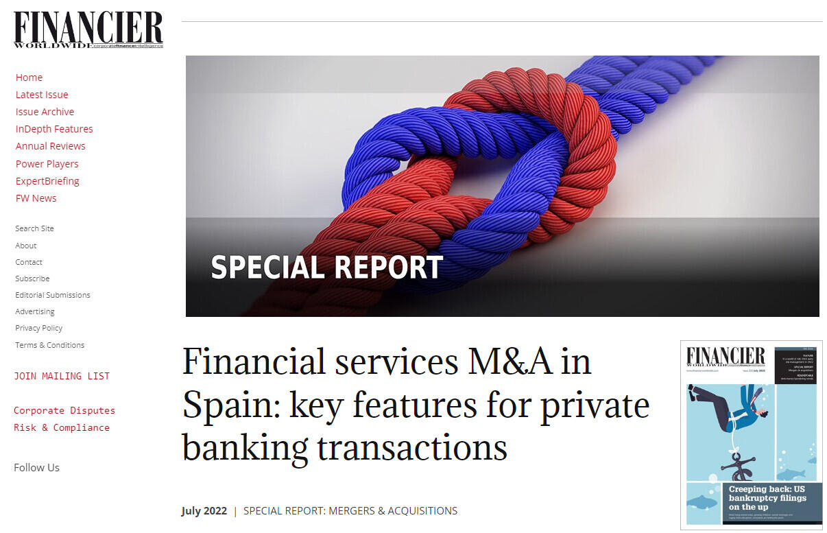 Financial services M&A in Spain: key features for private banking transactions