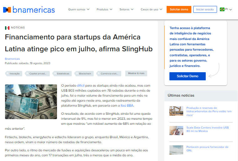 Financiamento para startups da América Latina atinge pico em julho, afirma SlingHub