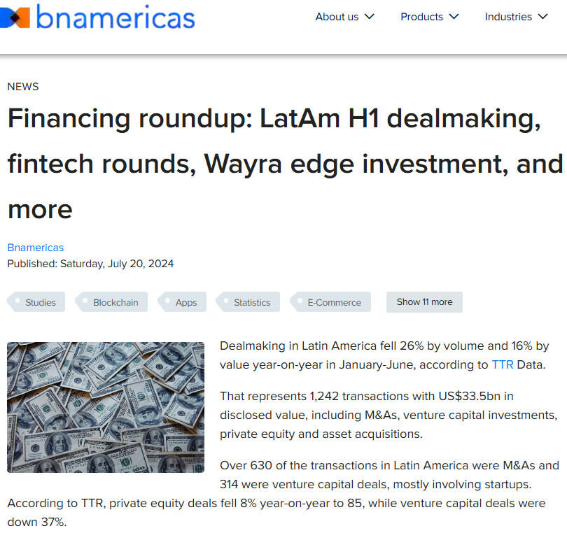 Financing roundup: LatAm H1 dealmaking, fintech rounds, Wayra edge investment, and more