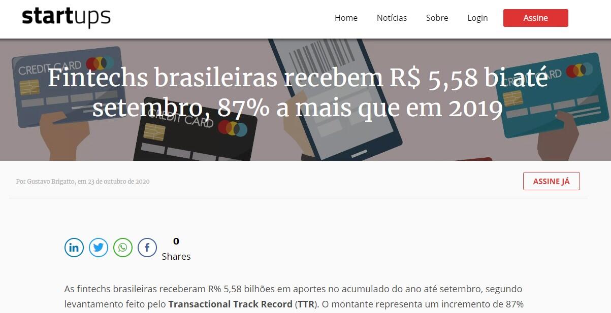 As fintechs brasileiras receberam R% 5,58 bilhões em aportes no acumulado do ano até setembro, segundo levantamento feito pelo Transactional Track Record (TTR). O montante representa um incremento de 87% em relação aos valores registrados no mesmo período do ano passado.