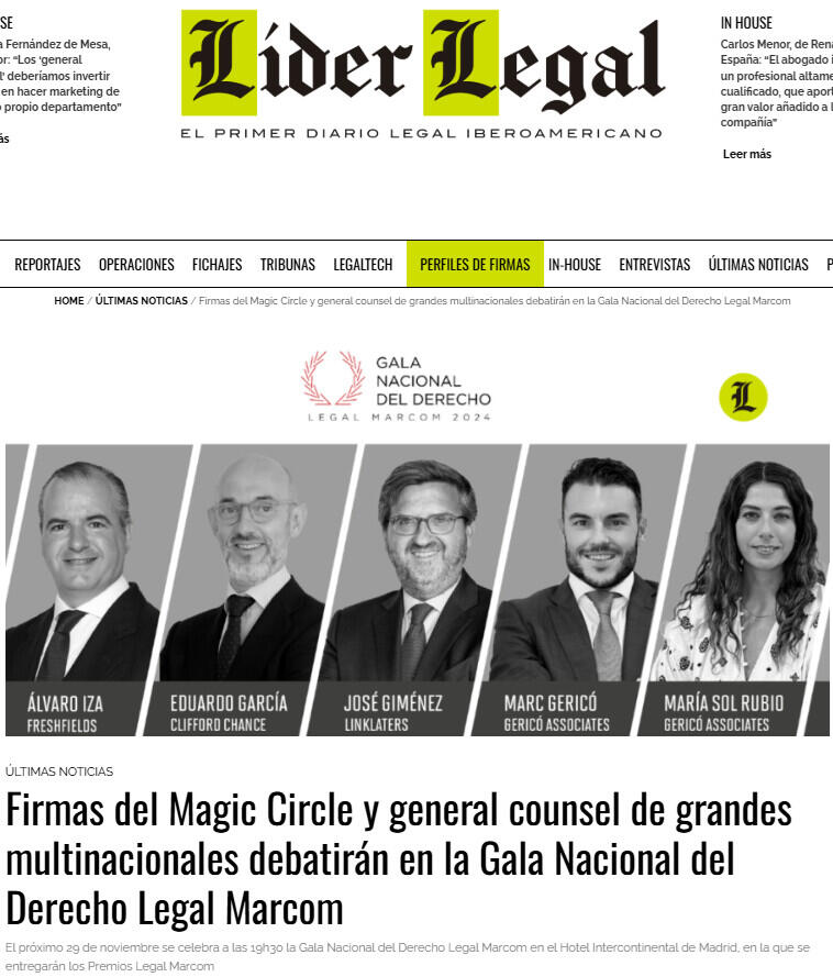 Durante las semanas previas a la Gala Nacional del Derecho Legal Marcom, Gericó Associates ha organizado dos eventos antesala de los premios en las sedes de Baker McKenzie y CMS Albiñana & Suárez de Lezo en Madrid sobre desarrollo de negocio en el sector legal, client feedback y los criterios de contratación de firmas por los general counsel.