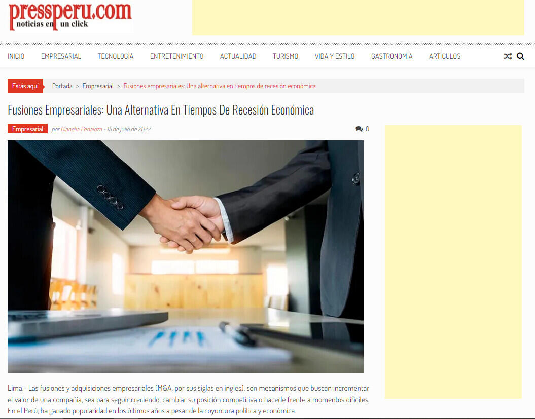 Lima.- Las fusiones y adquisiciones empresariales (M&A, por sus siglas en inglés), son mecanismos que buscan incrementar el valor de una compañía, sea para seguir creciendo, cambiar su posición competitiva o hacerle frente a momentos difíciles. En el Perú, ha ganado popularidad en los últimos años a pesar de la coyuntura política y económica.