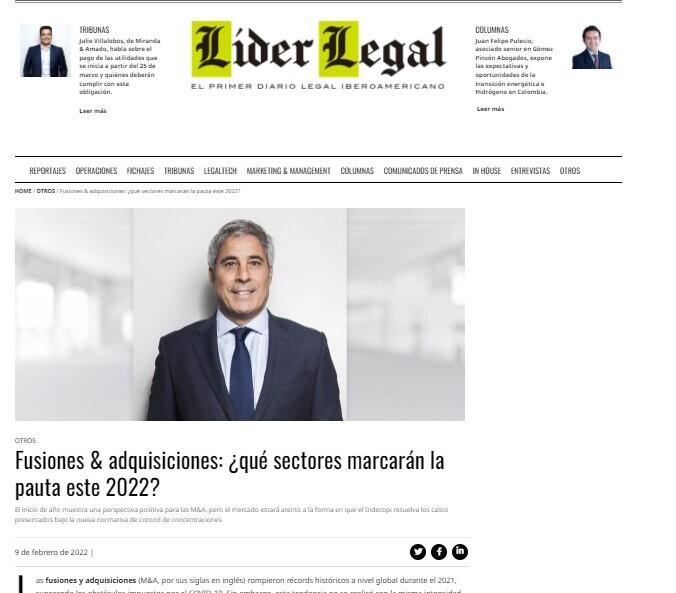 Miranda & Amado ha iniciado el año con una buena cantidad de mandatos cerrados y de solicitudes de propuestas de honorarios, lo cual hace proyectar que el 2022 será un año activo en este rubro. “Contamos también con varias transacciones ya firmadas, pero pendientes de cierre para este primer trimestre, por lo que podemos decir que el año ha comenzado con una perspectiva positiva”, afirmó Mac Lean.
