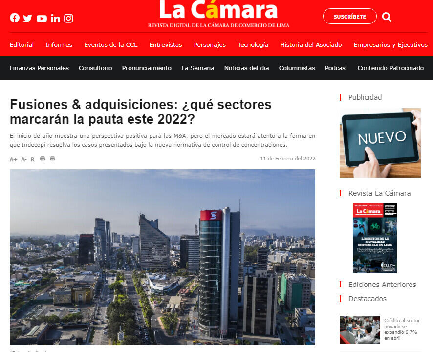El inicio de año muestra una perspectiva positiva para las M&A, pero el mercado estará atento a la forma en que Indecopi resuelva los casos presentados bajo la nueva normativa de control de concentraciones.