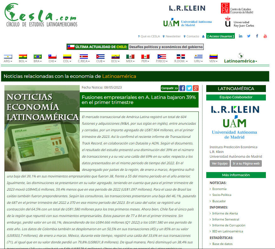Fusiones empresariales en A. Latina bajaron 39% en el primer trimestre