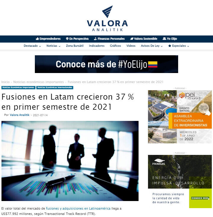 Fusiones en Latam crecieron 37 % en primer semestre de 2021