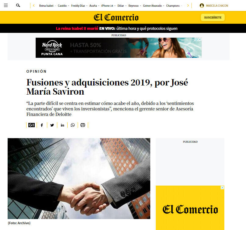 Según el último informe del Transactional Track Record (TTR), entre enero y julio del presente año, se registraron 61 operaciones de M&A (fusiones y adquisiciones) en el mercado peruano, habiendo otras 12 en curso (que sean públicas) y otras tantas que estarían arrancando o tendrían un carácter más confidencial.