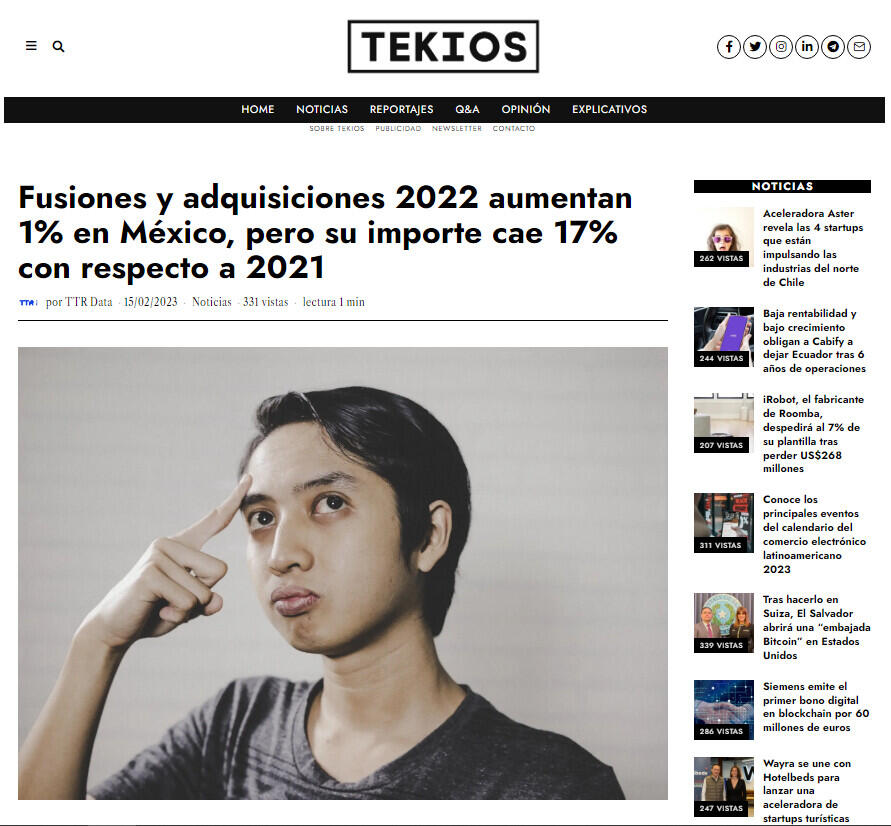 El mercado de fusiones y adquisiciones en México ha contabilizado en 2022 un total de 422 transacciones, de las cuales 205 suman un importe no confidencial de US$16.036 millones, de acuerdo con el informe anual de TTR Data en colaboración con Intralinks. Estos datos reflejan un aumento del 1% en el número de transacciones y un descenso del 17% en su importe con respecto a 2021.
