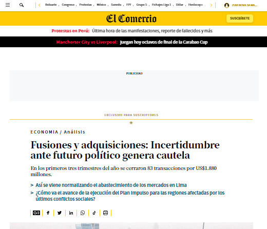 El 2022 fue un año de dinamismo para el mercado de fusiones y adquisiciones (M&A) en el Perú, aunque no fue el mejor de cara al cierre de acuerdos.