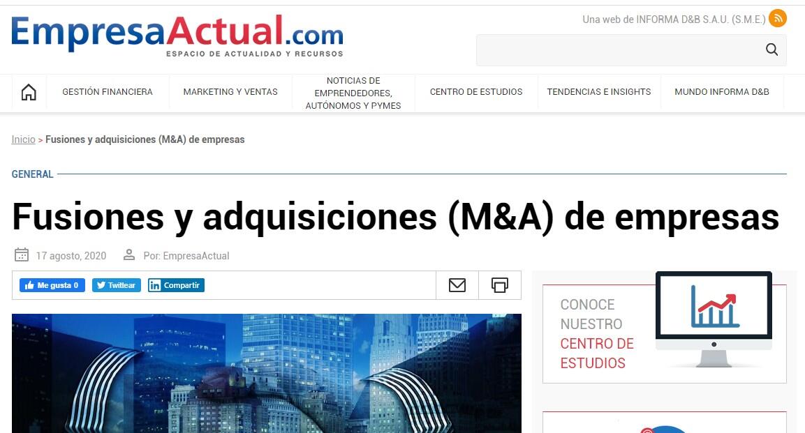 En primer lugar, vamos a analizar los conceptos de fusiones y adquisiciones (M&A, acrónimo en inglés de mergers and acquisitions) de empresas.