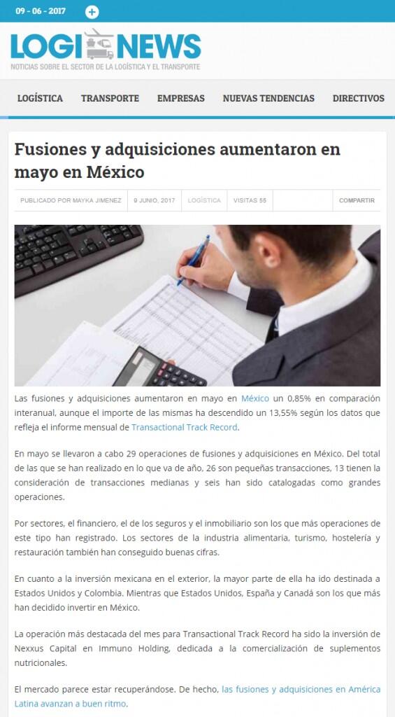 Las fusiones y adquisiciones aumentaron en mayo en México un 0,85% en comparación interanual, aunque el importe de las mismas ha descendido un 13,55% según los datos que refleja el informe mensual de Transactional Track Record.