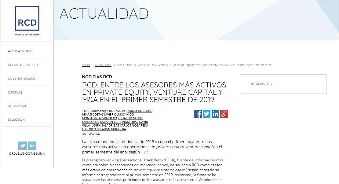 Además, TTR seleccionó a la transacción realizada por Alicorp, al adquirir el 100% de TASA, Tecnología Aplicada, Atlantis; como la más destacada del primer trimestre del 2019.