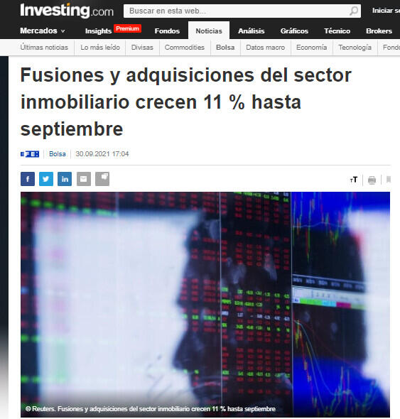 En términos mensuales, en septiembre se han registrado 34 operaciones en el sector inmobiliario español por un importe total de 587 millones, por debajo de las 39 transacciones registradas el mismo mes de 2020 y los casi 1.003 millones invertidos.