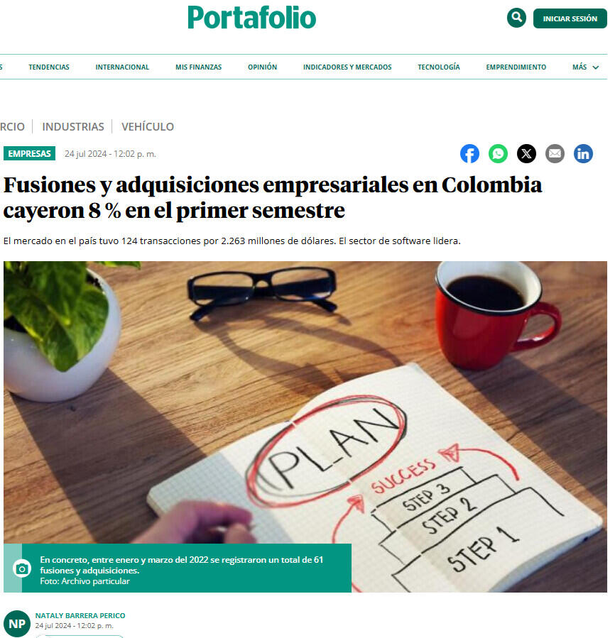 Fusiones y adquisiciones empresariales en Colombia cayeron 8 % en el primer semestre