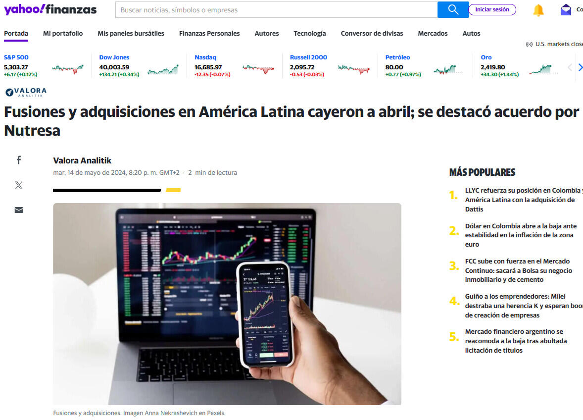 Fusiones y adquisiciones en América Latina cayeron a abril; se destacó acuerdo por Nutresa
