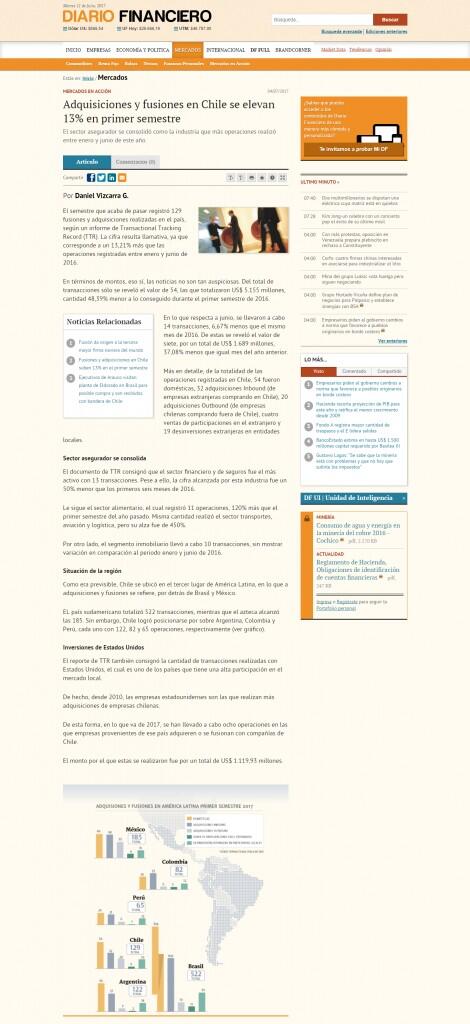 En términos de montos, eso sí, las noticias no son tan auspiciosas. Del total de transacciones solo se reveló el valor de 54, las que totalizaron USD 5.155 millones, cantidad 48,39% menor a lo conseguido durante el primer semestre de 2016.