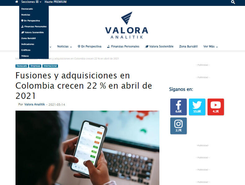 Fusiones y adquisiciones en Colombia crecen 22 % en abril de 2021