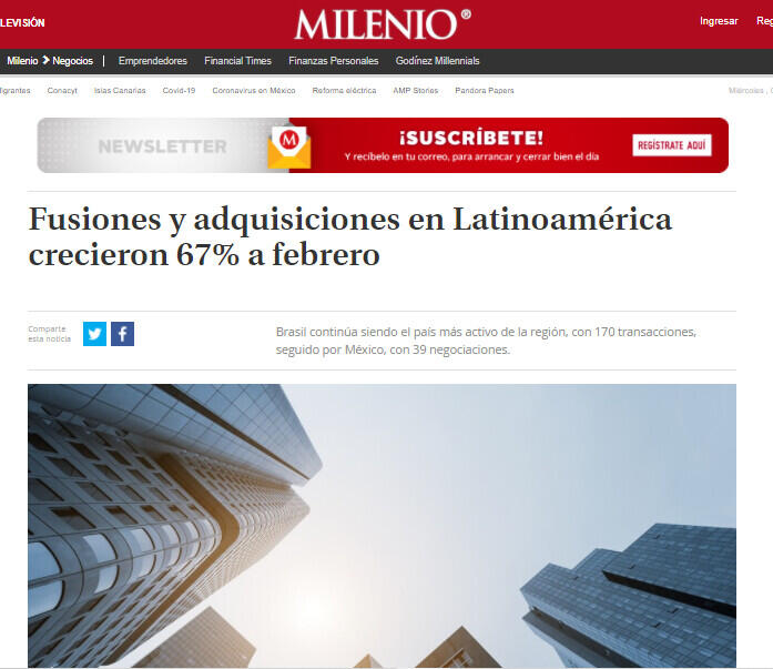 Fusiones y adquisiciones en Latinoamérica crecieron 67% a febrero