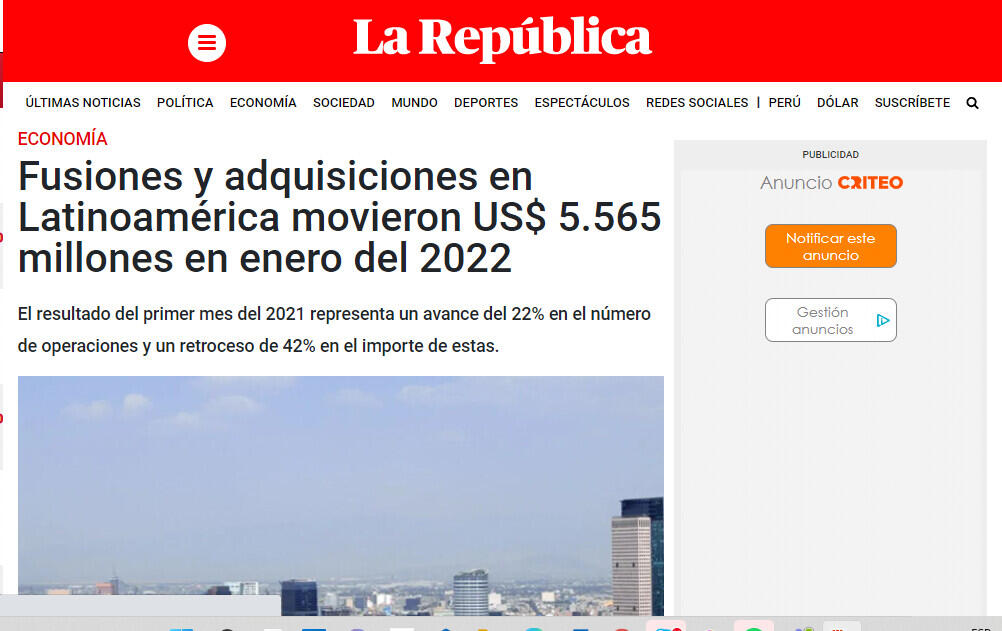 Fusiones y adquisiciones en Latinoamérica movieron US$ 5.565 millones en enero del 2022