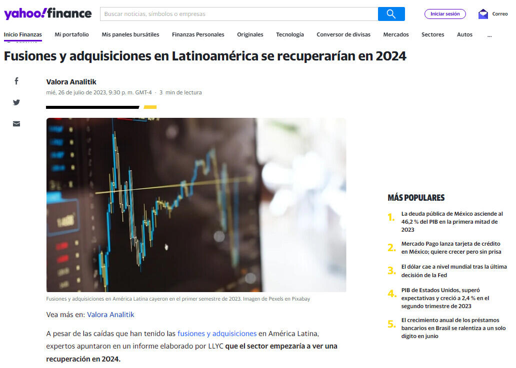 A pesar de las caídas que han tenido las fusiones y adquisiciones en América Latina, expertos apuntaron en un informe elaborado por LLYC que el sector empezaría a ver una recuperación en 2024.