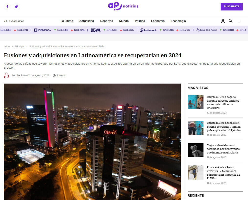 A pesar de las caídas que tuvieron las fusiones y adquisiciones en América Latina, expertos apuntaron en un informe elaborado por LLYC que el sector empezaría una recuperación en el 2024.