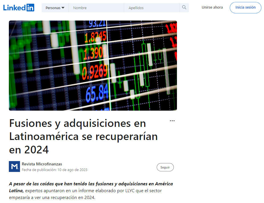 A pesar de las caídas que han tenido las fusiones y adquisiciones en América Latina, expertos apuntaron en un informe elaborado por LLYC que el sector empezaría a ver una recuperación en 2024.