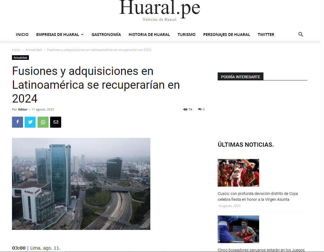 Muestra de ello, como indicó un reciente informe de Transactional Track Record (TTR), se evidenció en el primer semestre del 2023 cuando en el consolidado se realizaron un total de 1,447 fusiones y adquisiciones en América Latina, entre anunciadas y cerradas, por 35,671 millones de dólares. Eso representó una disminución del 23 % en el número de transacciones y una reducción del 30% en su valor.