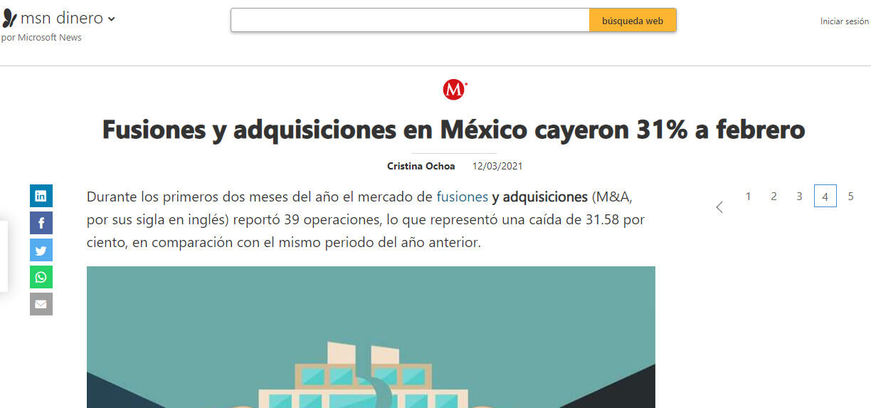 Fusiones y adquisiciones en México cayeron 31% a febrero