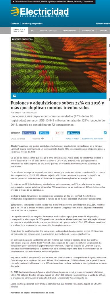 Los montos asociados a las fusiones y adquisiciones contabilizadas en el país por Landmark Capital experimentaron un fuerte aumento durante 2016 en comparación con el ejercicio previo y volvieron a niveles de 2014.