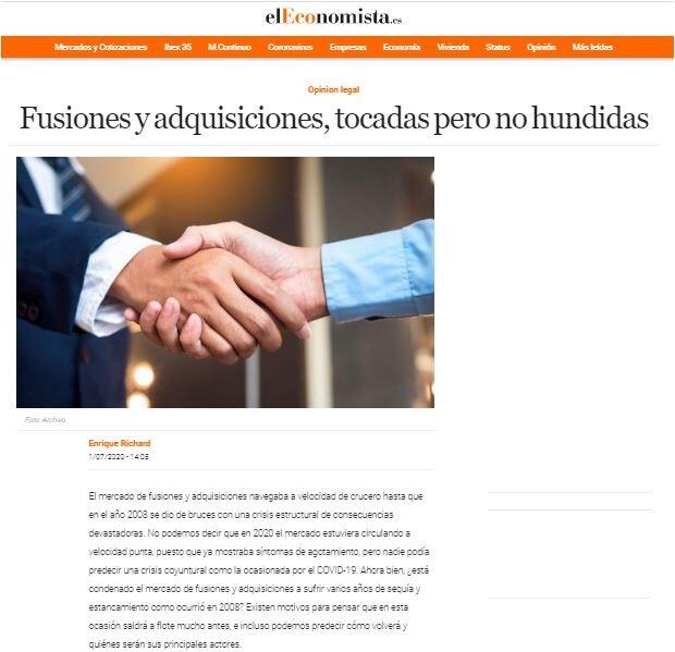 El mercado de fusiones y adquisiciones navegaba a velocidad de crucero hasta que en el año 2008 se dio de bruces con una crisis estructural de consecuencias devastadoras. No podemos decir que en 2020 el mercado estuviera circulando a velocidad punta, puesto que ya mostraba síntomas de agotamiento, pero nadie podía predecir una crisis coyuntural como la ocasionada por el COVID-19. Ahora bien, ¿está condenado el mercado de fusiones y adquisiciones a sufrir varios años de sequía y estancamiento como ocurrió en 2008? Existen motivos para pensar que en esta ocasión saldrá a flote mucho antes, e incluso podemos predecir cómo volverá y quiénes serán sus principales actores.