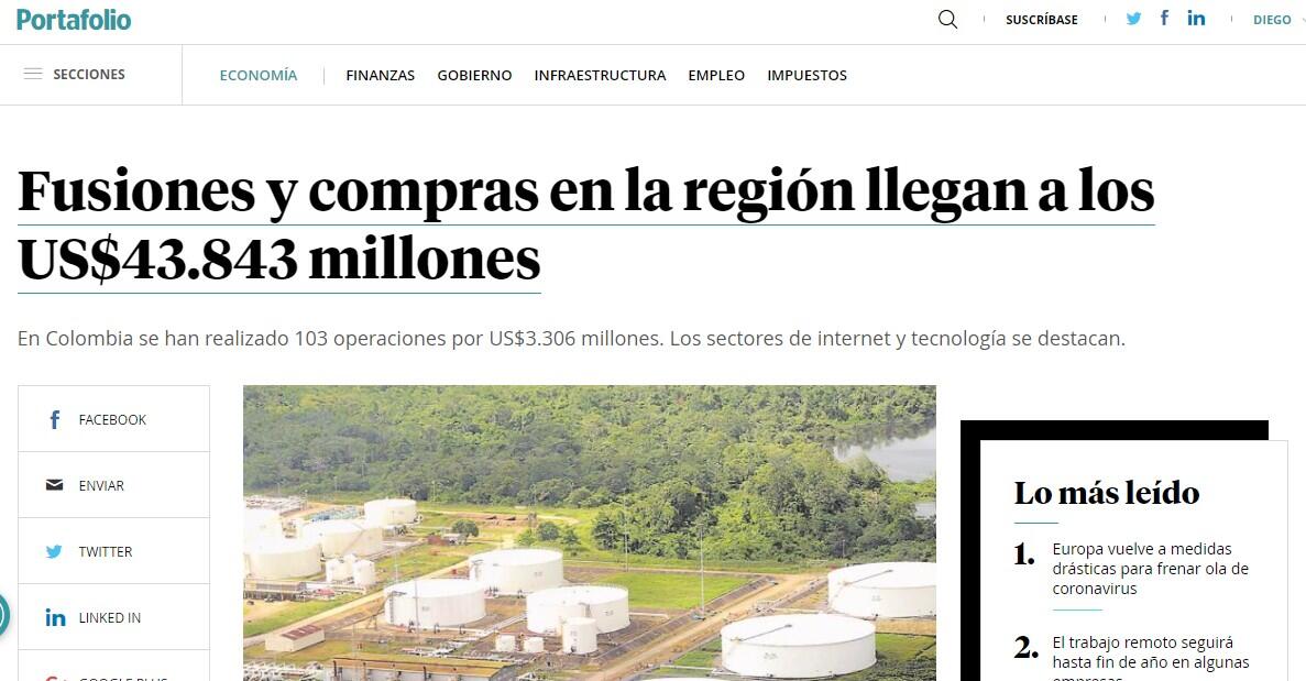 (Colombia sube en ránking de fusiones y adquisiciones).