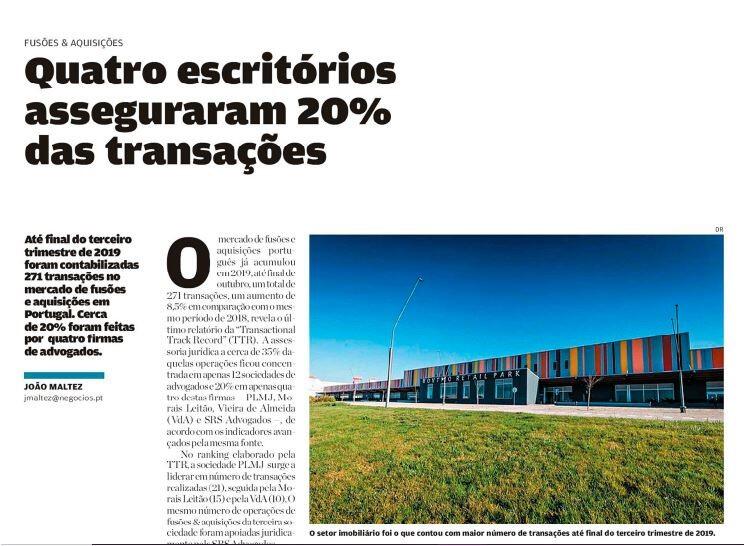 Até final do terceiro trimestre de 2019 foram contabilizadas 271 transações no mercado de fusões e aquisições em Portugal. Cerca de 20% foram feitas por quatro firmas de advogados.
