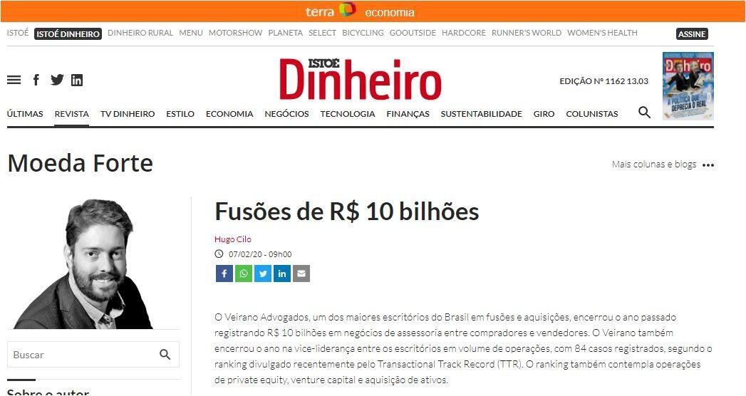 O Veirano Advogados, um dos maiores escritórios do Brasil em fusões e aquisições, encerrou o ano passado registrando R$ 10 bilhões em negócios de assessoria entre compradores e vendedores. O Veirano também encerrou o ano na vice-liderança entre os escritórios em volume de operações, com 84 casos registrados, segundo o ranking divulgado recentemente pelo Transactional Track Record (TTR). O ranking também contempla operações de private equity, venture capital e aquisição de ativos.