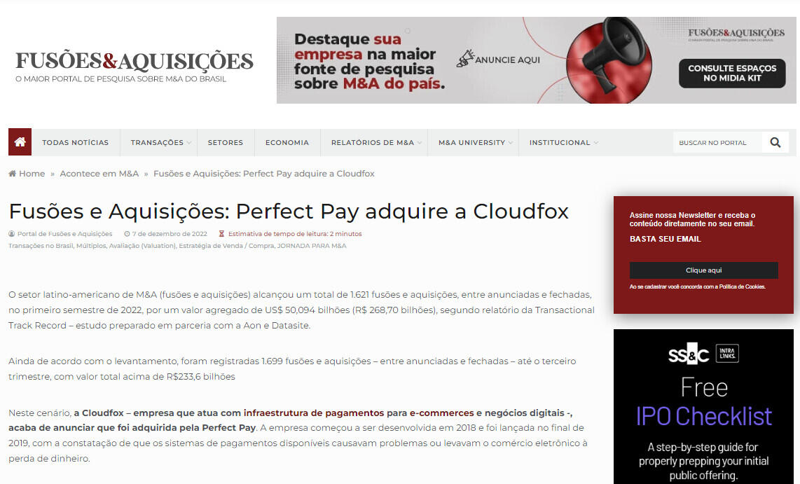 Fusões e Aquisições: Perfect Pay adquire a Cloudfox
