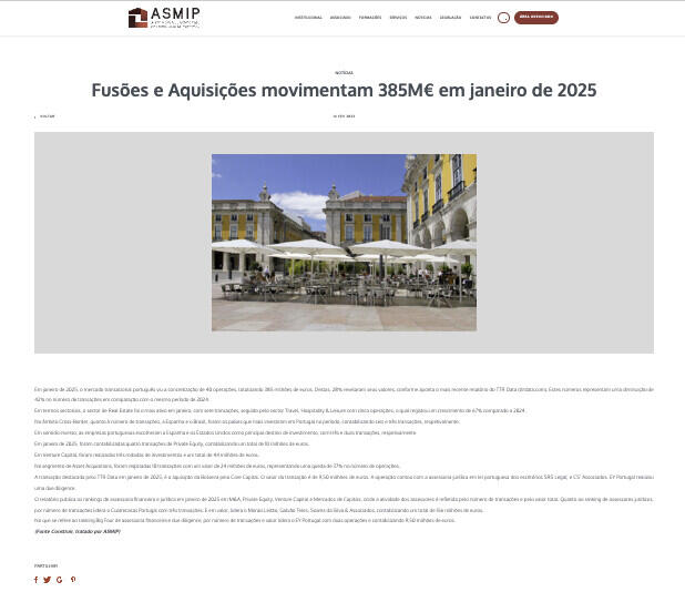 Fusões e Aquisições movimentam 385M€ em janeiro de 2025