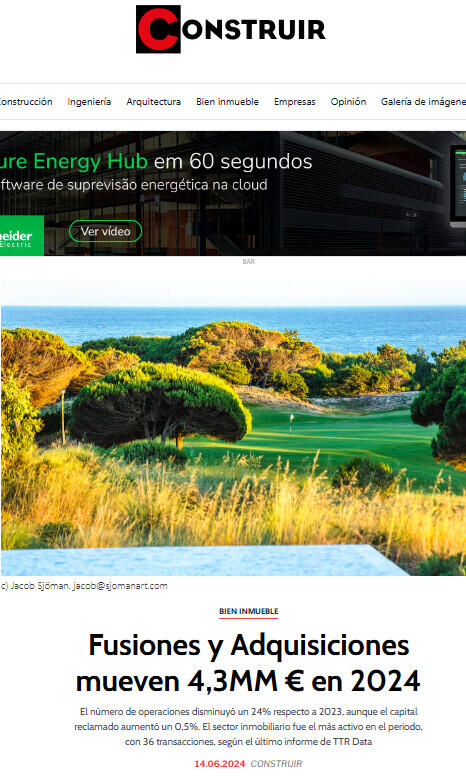 La transacción destacada por TTR Data en mayo de 2024 fue la venta por parte de Quinta da Marinha de The Oitavos a BTG Pactual, Square View y Green Jacket. El valor de la operación es de 160 millones de euros. La operación contó con el asesoramiento jurídico en derecho portugués por parte de los bufetes de abogados Morais Leitão, Galvão Teles, Soares da Silva & Associados y VdA, Vieira de Almeida. En el aspecto financiero, fue asesorada por BTG Pactual y en Due Diligence por EY Portugal.