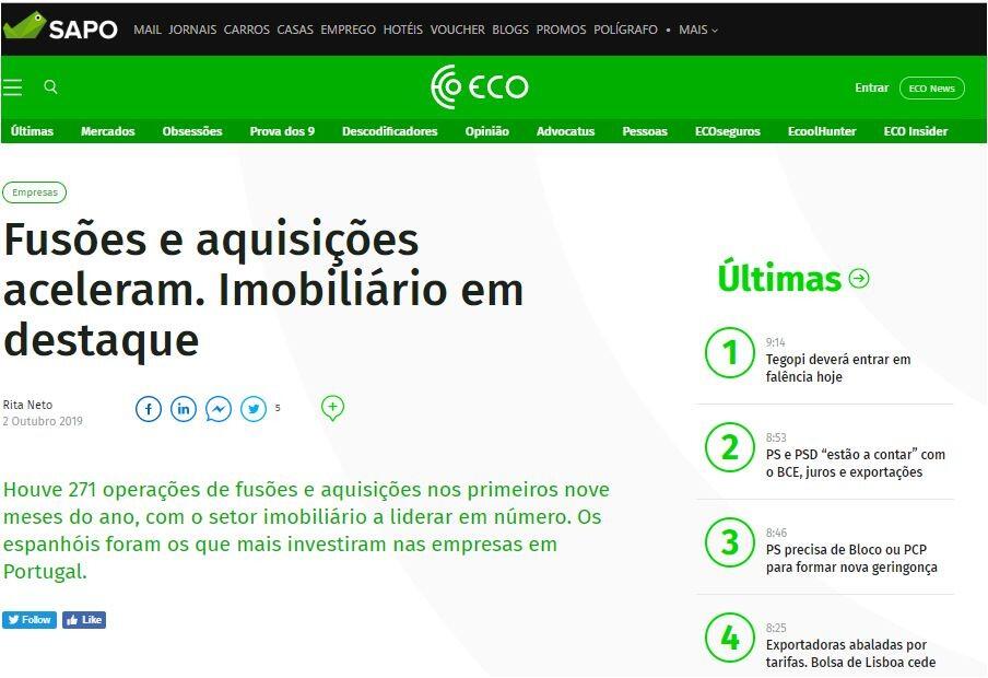 Fusões e aquisições aceleram. Imobiliário em destaque