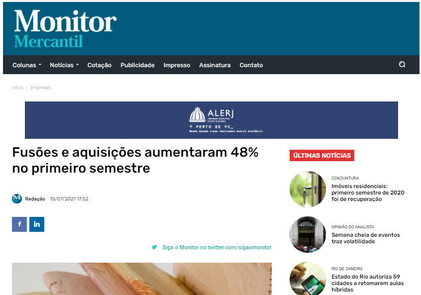 No segundo trimestre de 2021, 485 fusões e aquisições foram registradas, entre anunciadas e concluídas, por um valor total de R$ 499,4 bilhões. Conforme o relatório, o setor de Tecnologia permanece o mais ativo do ano, com um total de 363 transações, representando um aumento de 98% em relação ao mesmo período de 2020. Em segundo lugar está setor de Financeiro e Seguros, com 170 transações.