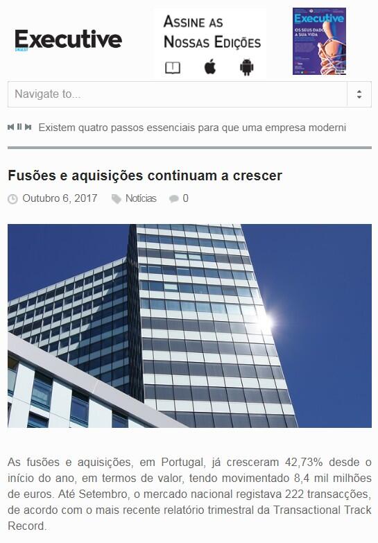 As fusões e aquisições, em Portugal, já cresceram 42,73% desde o início do ano, em termos de valor, tendo movimentado 8,4 mil milhões de euros. Até Setembro, o mercado nacional registava 222 transacções, de acordo com o mais recente relatório trimestral da Transactional Track Record.