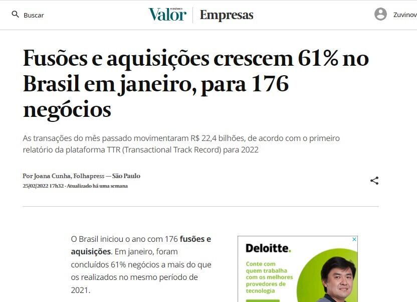 O Brasil iniciou o ano com 176 fusões e aquisições. Em janeiro, foram concluídos 61% negócios a mais do que os realizados no mesmo período de 2021.