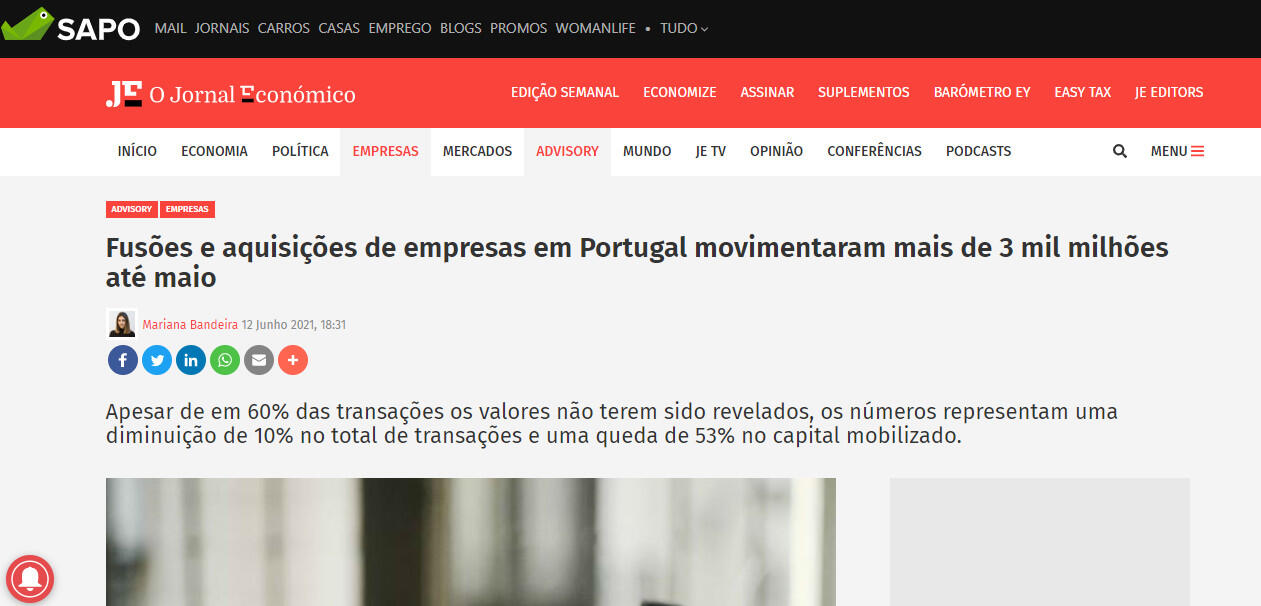 Fusões e aquisições de empresas em Portugal movimentaram mais de 3 mil milhões até maio